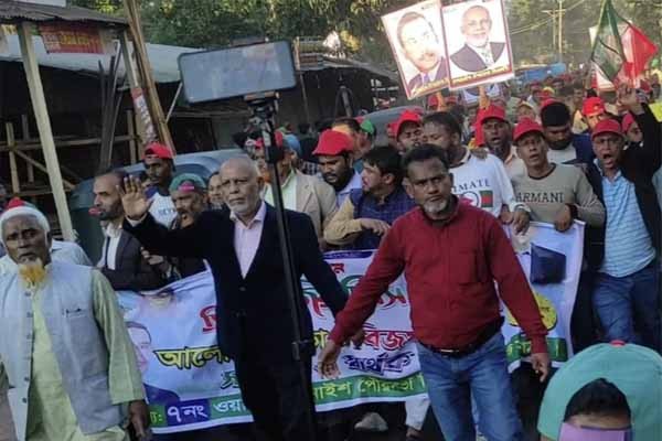 সোমবার বিকাল ৩টা থেকে উপজেলার দুইটি পৌরসভা ও আটটি ইউনিয়ন থেকে খণ্ড খণ্ড র্যালি নিয়ে বিএনপি ও অঙ্গ সংগঠনের নেতাকর্মীরা শাহ্ আমিন পার্কে জড়ো হয়। পরে সেখান থেকে বিজয় র্যালি বের করা হয়। র্যালিতে কয়েক হাজার নেতাকর্মী ও বিএনপির সমর্থকরা অংশগ্রহণ করেন।