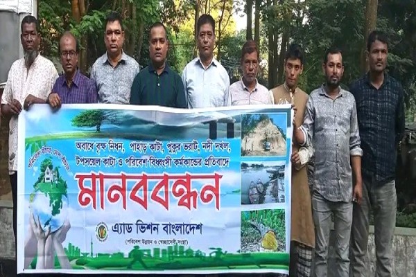 পরিবেশ উন্নয়ন সংস্থা এ্যাড ভিশনের মানববন্ধন