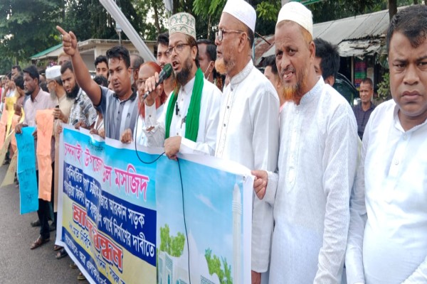 চন্দনাইশে পূর্বের নিধারিত জায়গায় মডেল মসজিদ নির্মাণের দাবিতে মানববন্ধন