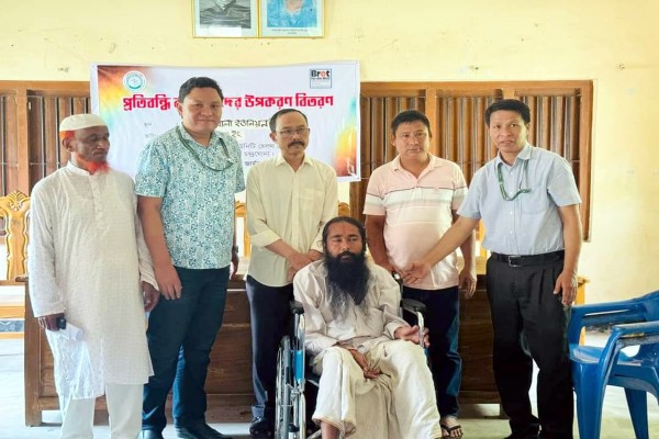 রাইখালী বাজারের প্রতিবন্ধি টিটু ভট্টাচার্য পেলেন হুইল চেয়ার