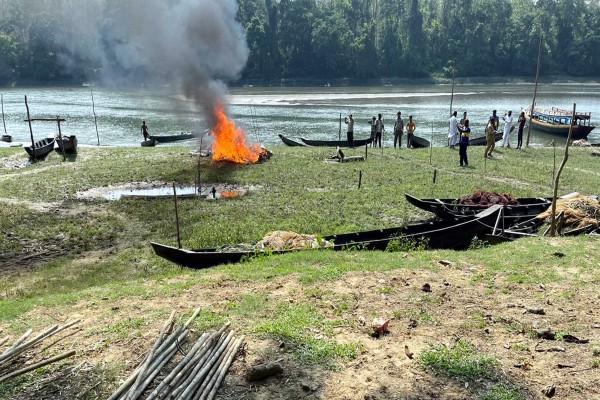 কাপ্তাই কর্ণফুলি নদীতে মৎস্য বিভাগের অভিযানে, ৫ হাজার মিটার কারেন্ট জাল এবং ২০ টি রিং জাল জব্দ