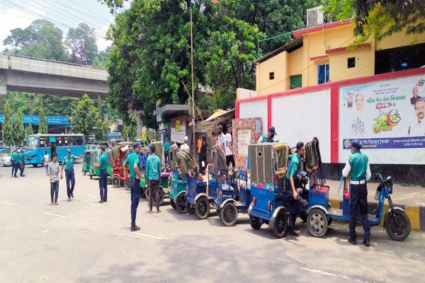 টাইগারপাসে ট্রাফিক পুলিশের অভিযানে, জব্দ করা হলো ৩০ অবৈধ অটোরিকশা