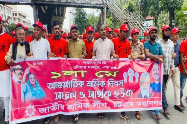 জাতীয় শ্রমিক লীগ চট্টগ্রাম মহানগর আয়োজিত মহান মে দিবস উপলক্ষে নগরীর ওয়াসার মোড় চত্বর হইতে এক র্যালী অনুষ্ঠিত হয়