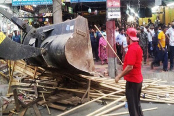 নিউমার্কেটে নালা ও ফুটপাতের শতাধিক ‘টং দোকান’ উচ্ছেদ