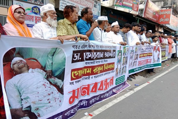 চিকিৎসক কোরবান আলীর হত্যাকারীদের দৃষ্টান্ত মূলক শাস্তির দাবিতে বিশাল মানবন্ধন অনুষ্ঠিত