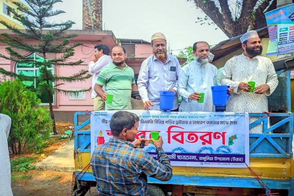 তীব্র গরমে তৃষ্ণার্তদের মাঝে ছাত্রসেনার শরবত বিতরণ