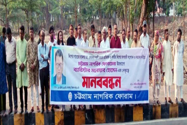 চট্টগ্রাম নাগরিক ফোরামের মানববন্ধনে বক্তারা--কোরবান আলী হত্যার বিচার ও কিশোর গ্যাং দমনে নগরবাসীকে এগিয়ে আসার আহবান