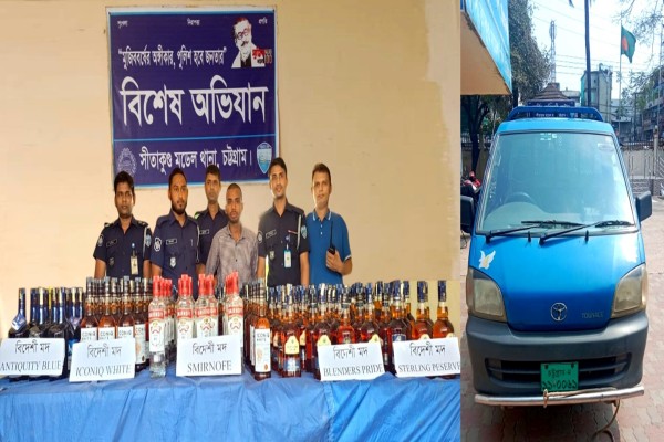 সীতাকুণ্ডে গাড়ী ভর্তি বিদেশী মদসহ আটক এক