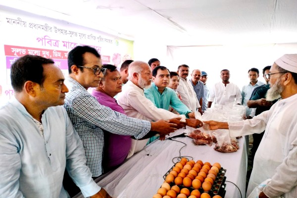 মাহে রমজান উপলক্ষে রাউজানের উরকিরচরে সুলভ মূল্যে গরুর মাংস,পেঁয়াজ,ডিম, দুধ বিক্রি