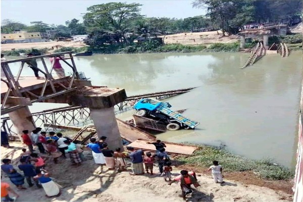 চন্দনাইশ বরকলে পরিত্যক্ত বেইলি ব্রিজে গাড়ী উঠায় ভেঙ্গে পড়েছে