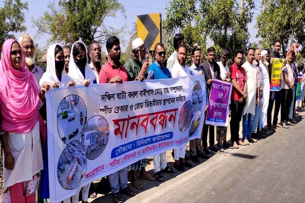 পটিয়া বাইপাস মহাসড়কে গতিরোধক(স্পীড ব্রেকার) নির্মাণের দাবিতে মানববন্ধন