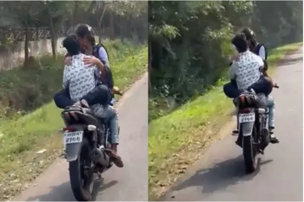 চলন্ত মোটরসাইকেলে ‘ফিল্মি স্টাইলে’ প্রেম, যুগল গ্রেফতার
