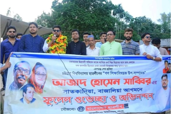 সাতকানিয়ায় চবি ছাত্রলীগ নেতা আজাদ হোসেন সাব্বিরকে ছাত্রলীগের সংবর্ধনা