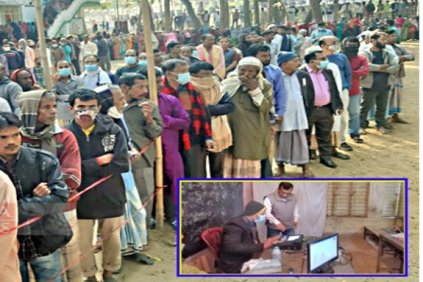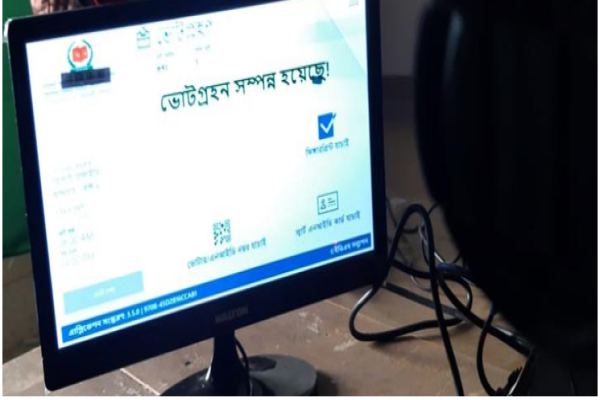 ইভিএমে ভোট দিচ্ছেন ভোটাররা