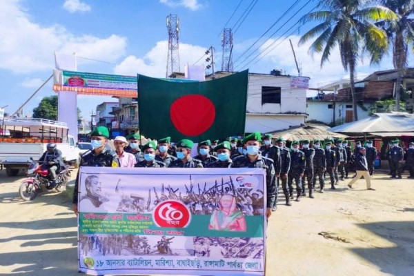 বাংলাদেশের স্বাধীনতার ৫০বছর পূর্তিতে বাঘাইছড়িতে ১৮আনসারের পতাকা র্যালী