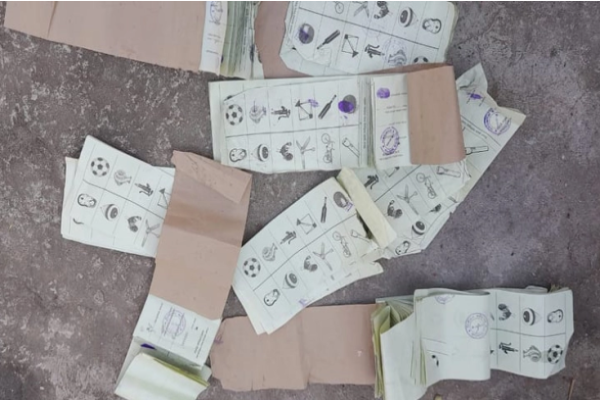 কেন্দ্রের বাইরে মিললো সিল মারা ব্যালট