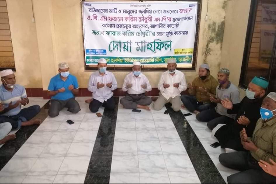 রাউজানের সাংসদপুত্র ফারাজ করিম চৌধুরীর রোগ মুক্তি কামনায় খতম ও দোয়া মাহফিল