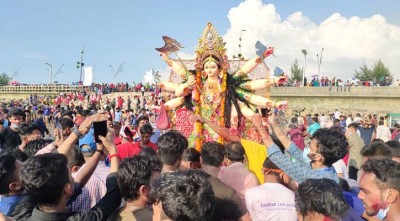 প্রতিমা বিসর্জন দিতে পতেঙ্গায় মানুষের ঢল