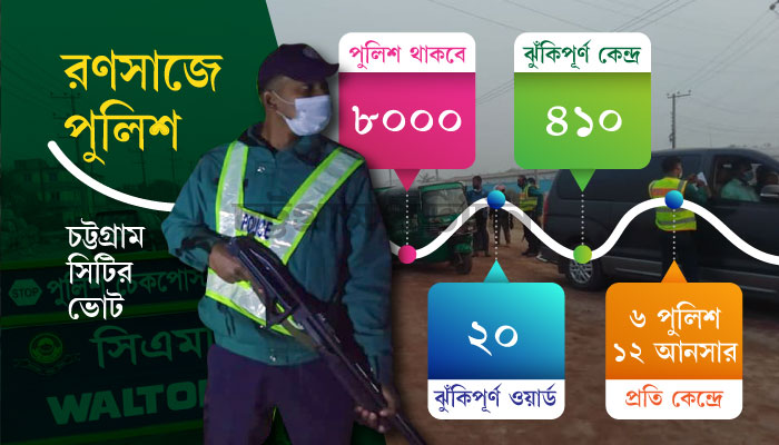 চট্টগ্রামে ৭৩৫ কেন্দ্র পাহারা দেবে ৮ হাজার পুলিশ, ঝুঁকিপূর্ণ ৪১০টি কেন্দ্র