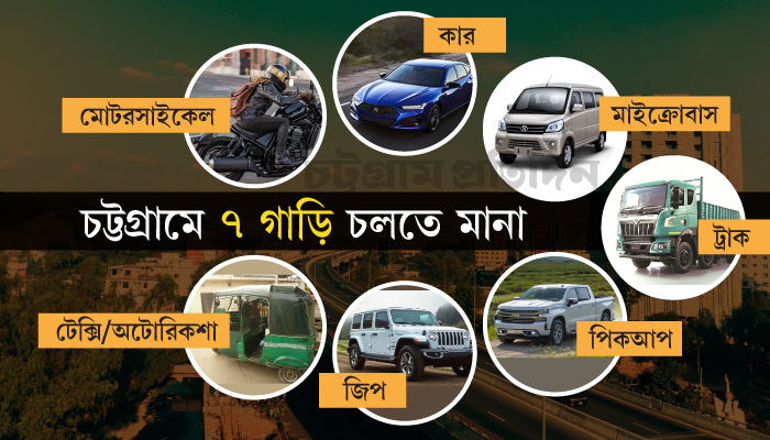 চট্টগ্রামে ৬ গাড়ি দুই দিন চলতে মানা, মোটরসাইকেল বন্ধ তিন দিন