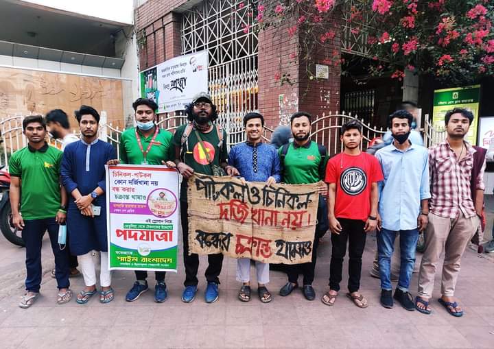 রাষ্ট্রায়াত্ব পাট কল বন্ধের প্রতিবাদে তেঁতুলিয়া থেকে পায়ে হেঁটে চট্টগ্রামে আকাশ