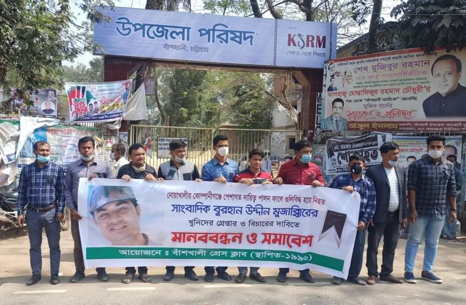 সাংবাদিক বোরহান হত্যার বিচারের দাবিতে বাঁশখালী প্রেসক্লাবের মানববন্ধন