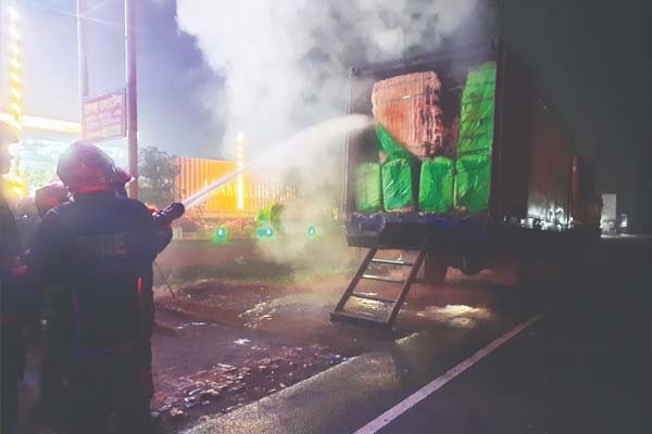 সীতাকুণ্ডে চলন্ত কাভার্ডভ্যানে আগুন পুড়ল অর্ধেক মালামাল
