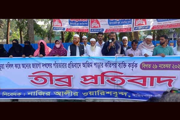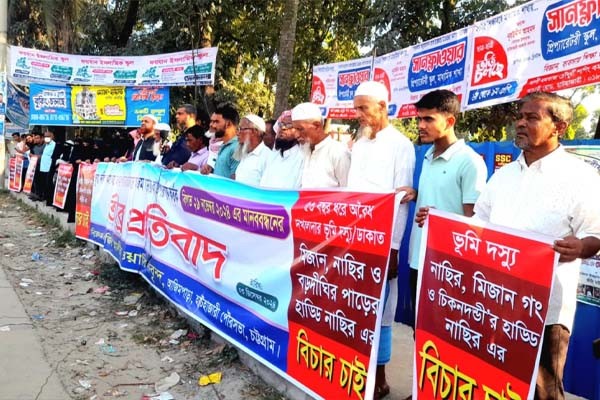 হাটহাজারীতে ভুয়া দলিলের মাধ্যমে জায়গা দখলের প্রতিবাদে ভুক্তভোগীদের মানববন্ধন