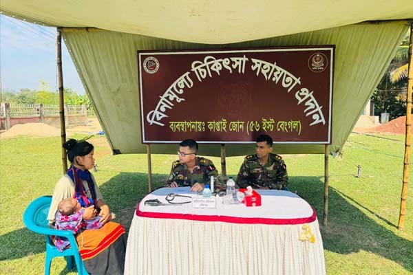 কাপ্তাই সেনা জোনের উদ্যোগে ভাল্লুকিয়ায় বিনামূল্যে চিকিৎসা সেবা