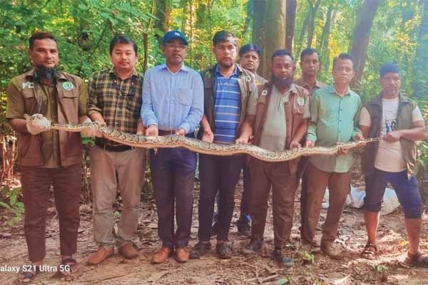 কাপ্তাই জাতীয় উদ্যানে ১১ ফুট লম্বা বার্মিজ অজগর অবমুক্ত