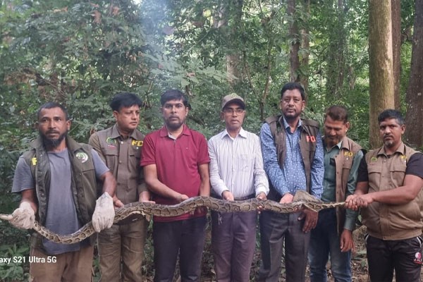 কাপ্তাই রেঞ্জে অবমুক্ত করা হলো ৭ কেজির বার্মিজ অজগর সাপ