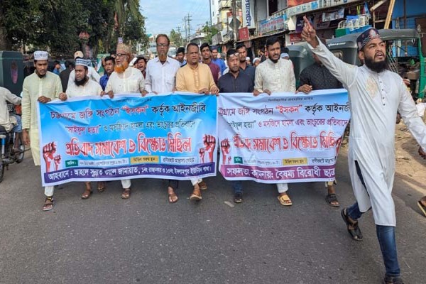 আইনজীবী সাইফুল হত্যা ও মসজিদে হামলার প্রতিবাদে রাঙ্গুনিয়ায় উত্তাল বিক্ষোভ